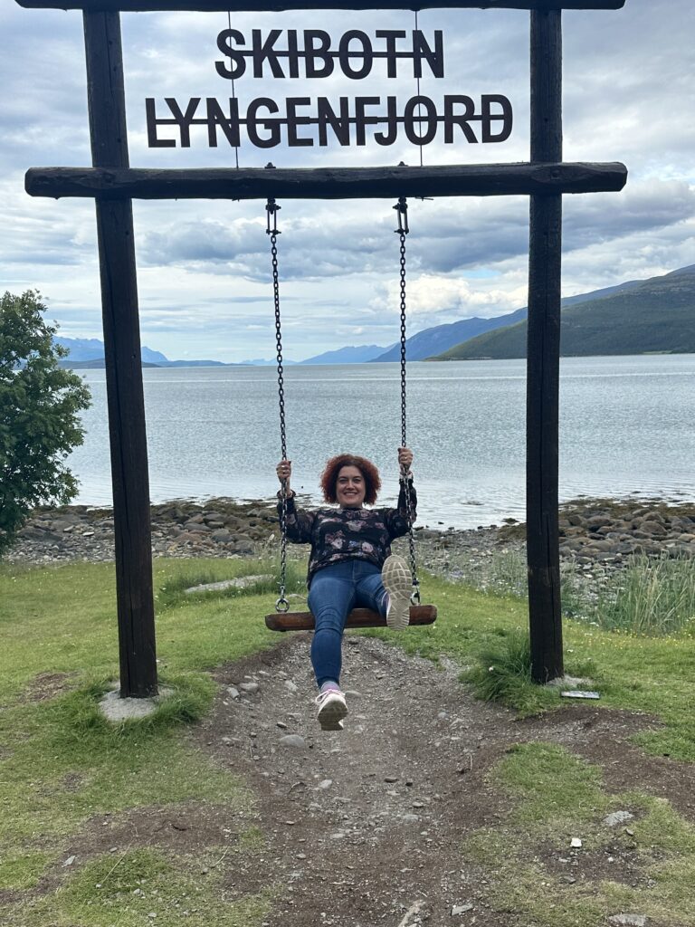 Sitten ohitettiin Kilpisjärven tulli ja kohta valtakunnanraja. Suunnattiin kohti Lyngenfjordin Skibotnia, jonka keinuun Johanna uskaltautui. Jälleen kerran oli upeat maisemat. Jotka kohta tulisivat jäämään kakkosiksi seuraaville…
