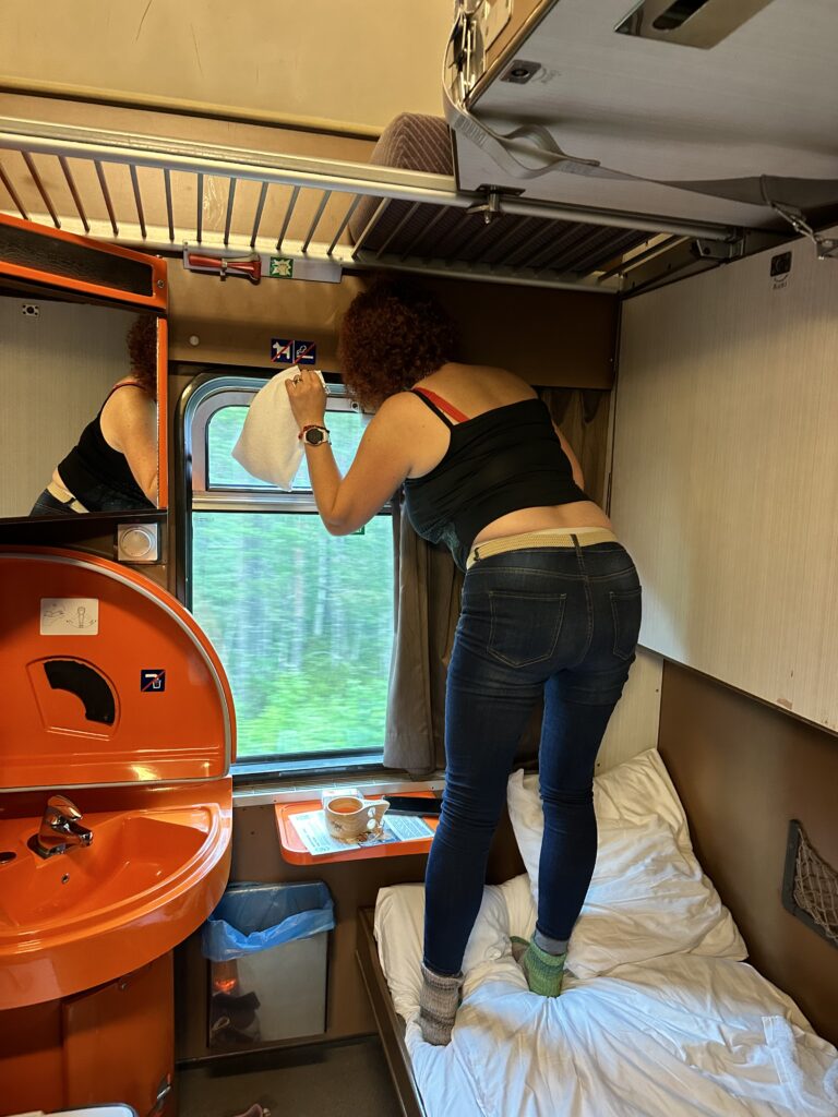 Ilta kului sitten romanttisesti virvokkeita nauttien ja höpötellen. Vanhan vaunun vessat oli järkyttäviä, mutta kyllä senkin kesti. Ja ai niin, oltiin omatoimisia ja nostettiin keskisänky ylös, jotta pystyi alapunkalla kumartumatta istumaan. Tomilla oli onneksi monitoimityökalu mukana, jolla sai sängyn taas avattua alas. Sängyn kyljessä kun luki, ettei sänkyä saa turvallisuussyistä nostaa- oho, taas rikottiin sääntöjä.